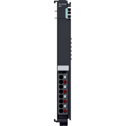 Den analoga utgångsmodulen XI422204 genererar utgångssignaler i området -10 till +10 V i en ctrlX I/O-station. Utgångssignalen matas ut galvaniskt isolerad från systemnivå med en upplösning på 16 bitar. De fyra utgångskanalerna har en gemensam masspotential. Utgångsstegen matas via 24 V-matningen från UP.